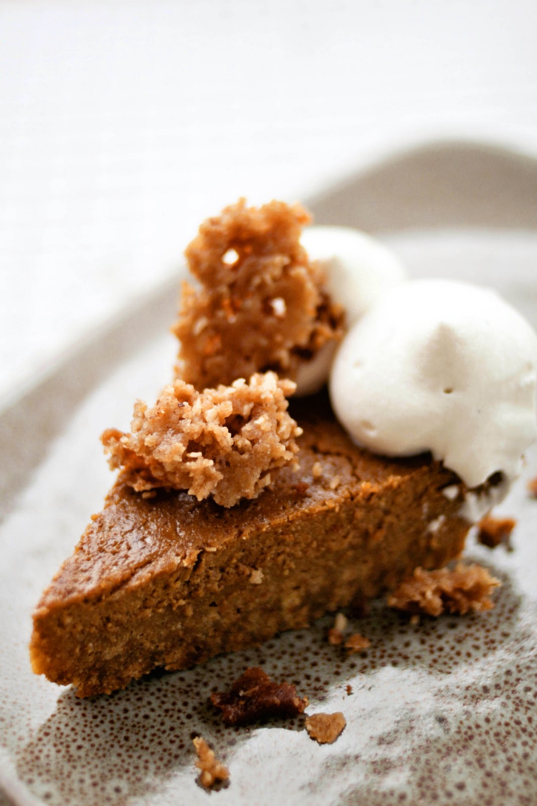 Last year was pretty ridiculous with the pumpkin shortage, so this year I made damn sure to stock up on all the pumpkin I would need and then some. I decided to try Bobby Flay's winning pumpkin pie from Throwdown! It boasts an untraditional graham cracker crust, an intensely flavored and smooth filling, all topped with boozy whipped cream and crispy oat crunchies to boot! The filling is incredibly dense (in a great way) and as smooth as can be - thanks to the straining. The oat crunchies provided a nice contrast in texture and I loved the maple scent of the whipped cream.