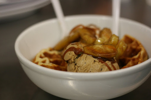 3. Frozen Yogurt Sundae: buttermilk waffles, ice cream, caramelized apples, and caramel sauce. This one was ginormous and the apples were actually fresh rather than that canned nastyness. It was warm, crispy, and melty!